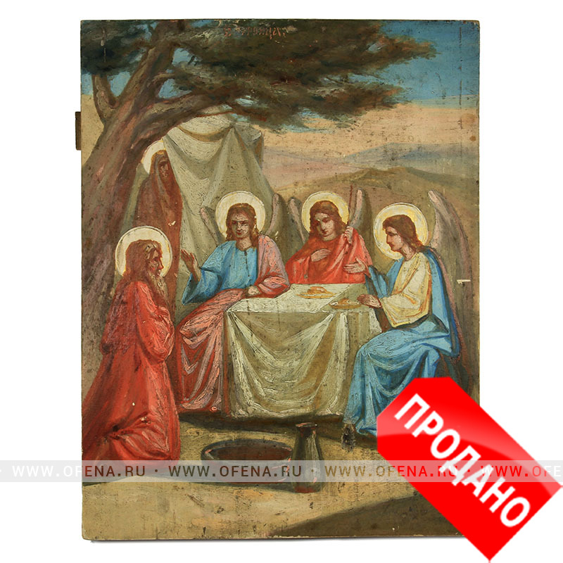 Старинная русская писаная икона Троица Ветхозаветная или икона Гостеприимство Авраама, икона модерн, икона аналой, икона Святой Живоначальной Троицы. Россия, Центр империи, XIX век.